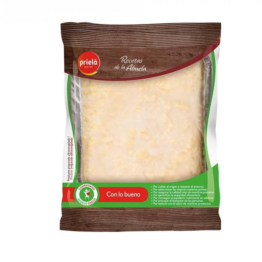 FORN: Escalfeu el forn prèviament a 200ºC durant uns 10 min. Retireu l’embolcall i col·loqueu la safata a l’interior, a la part central, durant uns 35 min. Si el producte ja està descongelat, reduïu el temps a 25 min. MICROONES: Retireu l’embolcall i col·loqueu el producte en una safata apta per a microones (no metàl·lica). Escalfeu-lo a màxima potència, entre 7 i 8 minuts (aparell de 850 W). Si el producte ja està descongelat, reduïu el temps a 4 o 5 min